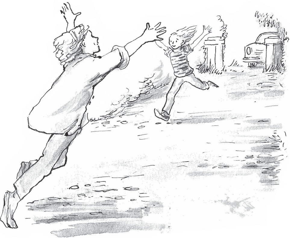 Early the next morning, the builders arrived and had already begun to put up scaffolding at the front of the house by the time Tiger was dressed. Higher and higher the poles and planks and ladders rose, so that the builders could climb up to the roof to fix the cracked chimney stacks and toppling clay pots. They propped open the conservatory door to let warm air flow through and dry out the damp that was making the bricks crumble. The scaffolding made the house look stronger and straighter, but to Tiger it now felt more skewwhiff than ever without Tom and Holly.