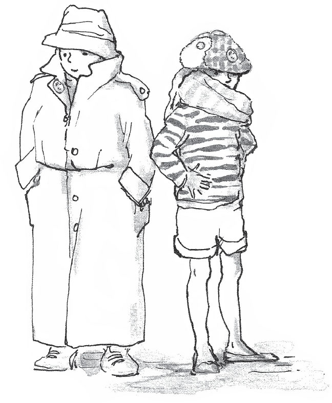 “Very Sherlock Holmes!” said Grumps to Tiger as she swished the scarf around her neck and pinned her badge to the checked hat with ear flaps.