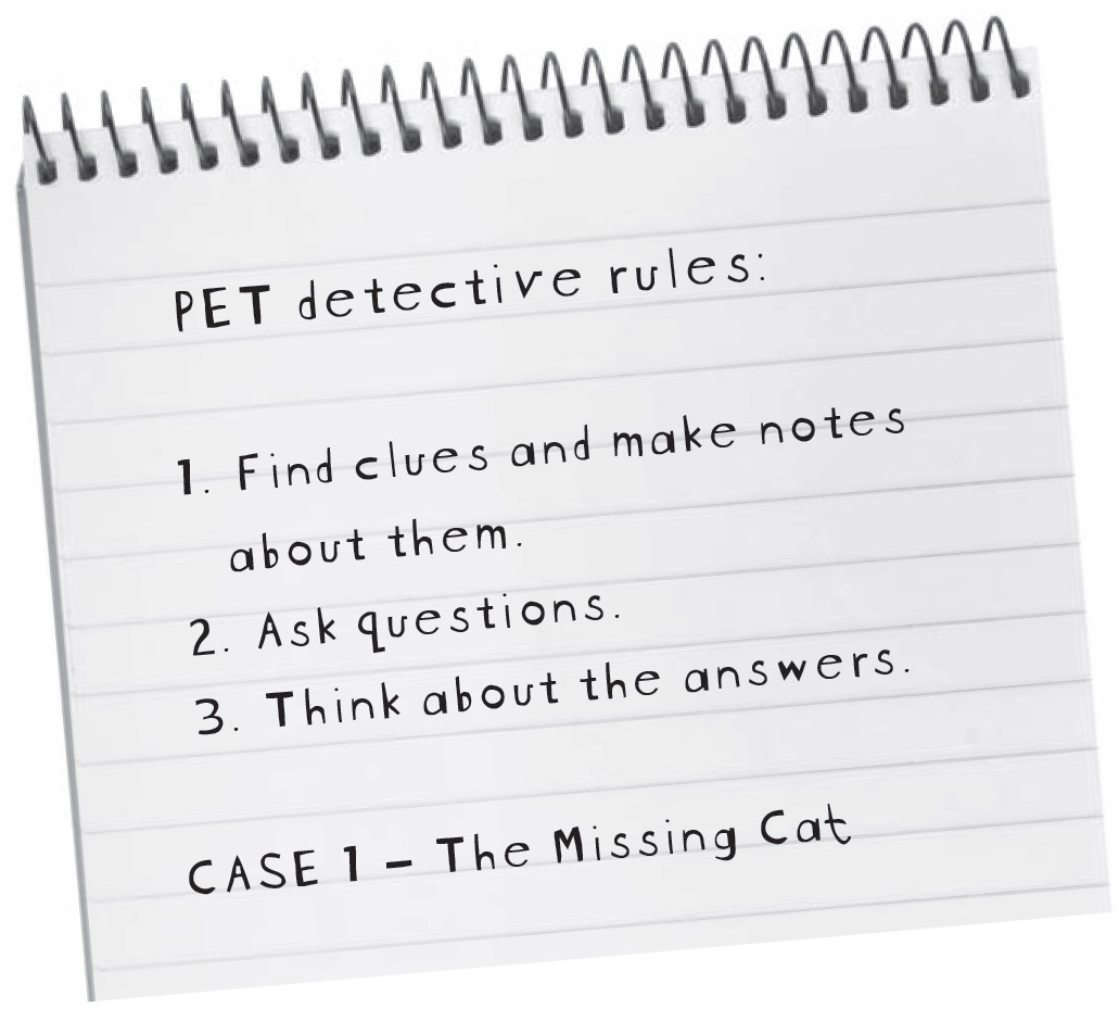 Tom’s grandfather was affectionately known as Grumps, although he was, in fact, the opposite of grumpy. At his kitchen table Tiger and Tom made badges from circles of cardboard and safety pins. On them they wrote: Private Eye Tiger – Detective, and Private Eye Tom – Detective, shortened to PET detective. It made them think that they were destined to find the cat all along.