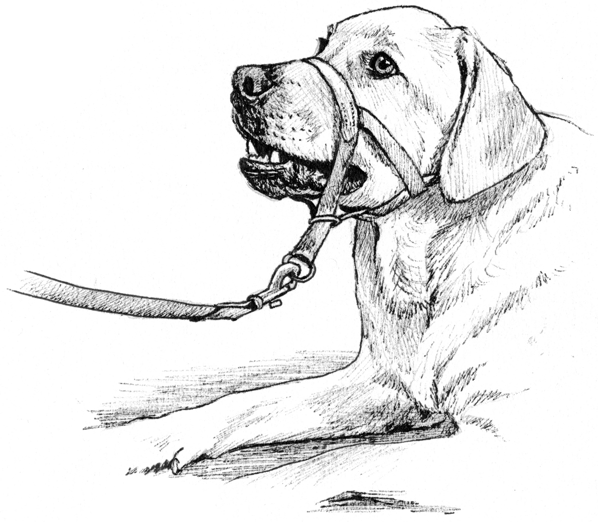 Inspired, his owners were given two weeks to practise these new behaviours. Ice was to be engaged in ‘fun training’ twice a day, using food and a relaxed approach, and was to get used to wearing a special head collar so that his owners could take him for a walk without being towed along behind him. Head collars allow almost complete control, like power steering, and make perfect sense in cases where the owner needs to avoid getting into a battle of strength with a big dog, who is clearly going to win. After all, no one would consider walking a horse on a piece of string. This bit of kit made all the difference to Sharon, as she could walk Ice with confidence when using it.