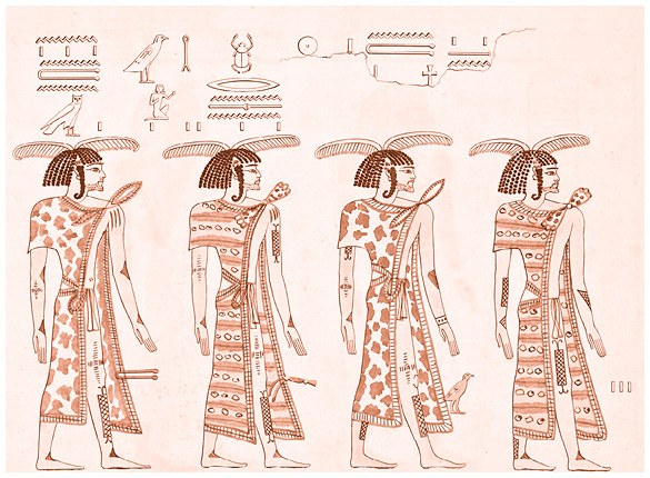 Известные египтянам народы, изображенные в гробнице Сети I. Гравюра из альбома «Памятники Египта и Нубии». Художник Дж. Анджелелли, 1832–1844 гг.