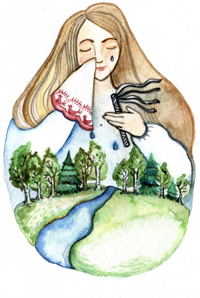 Наутро отдал отец дочери рушник да плёточку и рассказал ей, что мать даже с того света её оберегала. Расплакалась Настенька, вытерла слёзы рушником, а из него алмазы посыпались и по всей сибирской земле раскатились!