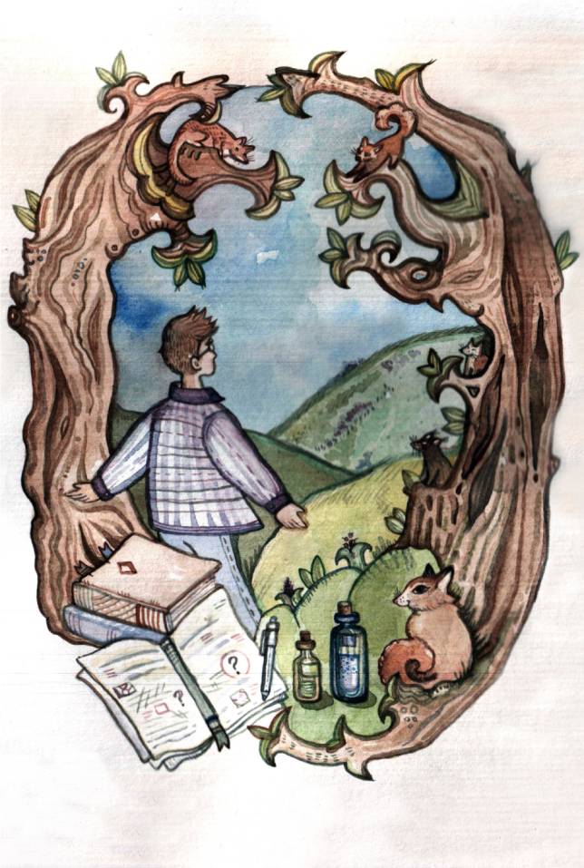 Учёный и милый зверёк очутились в лесу. Лес был прекраснейший: солнышко ярко освещало путь, всюду радостно носились зверьки, атмосфера была успокаивающей и даже убаюкивающей.