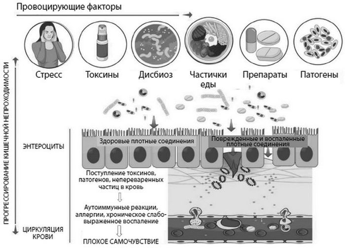 Дисбиоз – дисбаланс кишечной микробиоты – является фактором, связанным с чрезмерной проницаемостью кишечного барьера, а эндотоксемия – прямым следствием синдрома повышенной кишечной проницаемости и дисбактериоза.