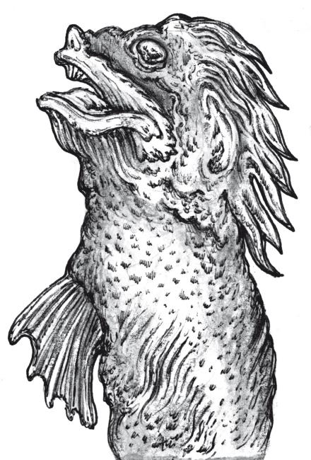 Алхимическая посуда или дома, виднеющиеся из-за городской стены, – понимать можно было двояко, – были на следующем листе, а внизу, в углу, плясала, упираясь кулаком в бедро, полная женщина с головой свиньи. В другой руке у нее был разбитый кувшин.