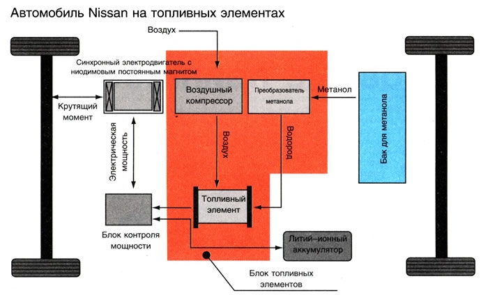 Рис.2. Схема автомобиля Nissan на топливных элементах