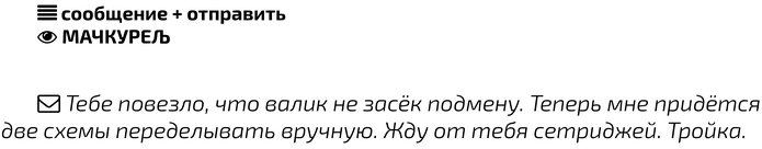 – Ногормально. Вышлю уточнённую схему ответом на визы запрос.