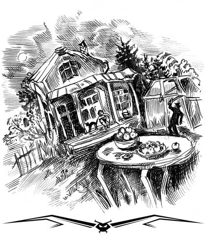 В этот момент одна из досок треснула, скелет парника со скрипом поехал вбок и осел на кустах ябломятлика, растопырив по сторонам доски.