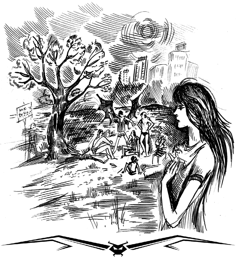В воздухе со звоном встретились десяток бутылок жуть-колы. Люди недовольно косились на шумную компанию, очевидно принимая их за чудаковатых студентов. Один нацепил крылья, другой болтает про троллей и магов… Насмотревшиеся фантастики подростки из какого-нибудь молодежного клуба.