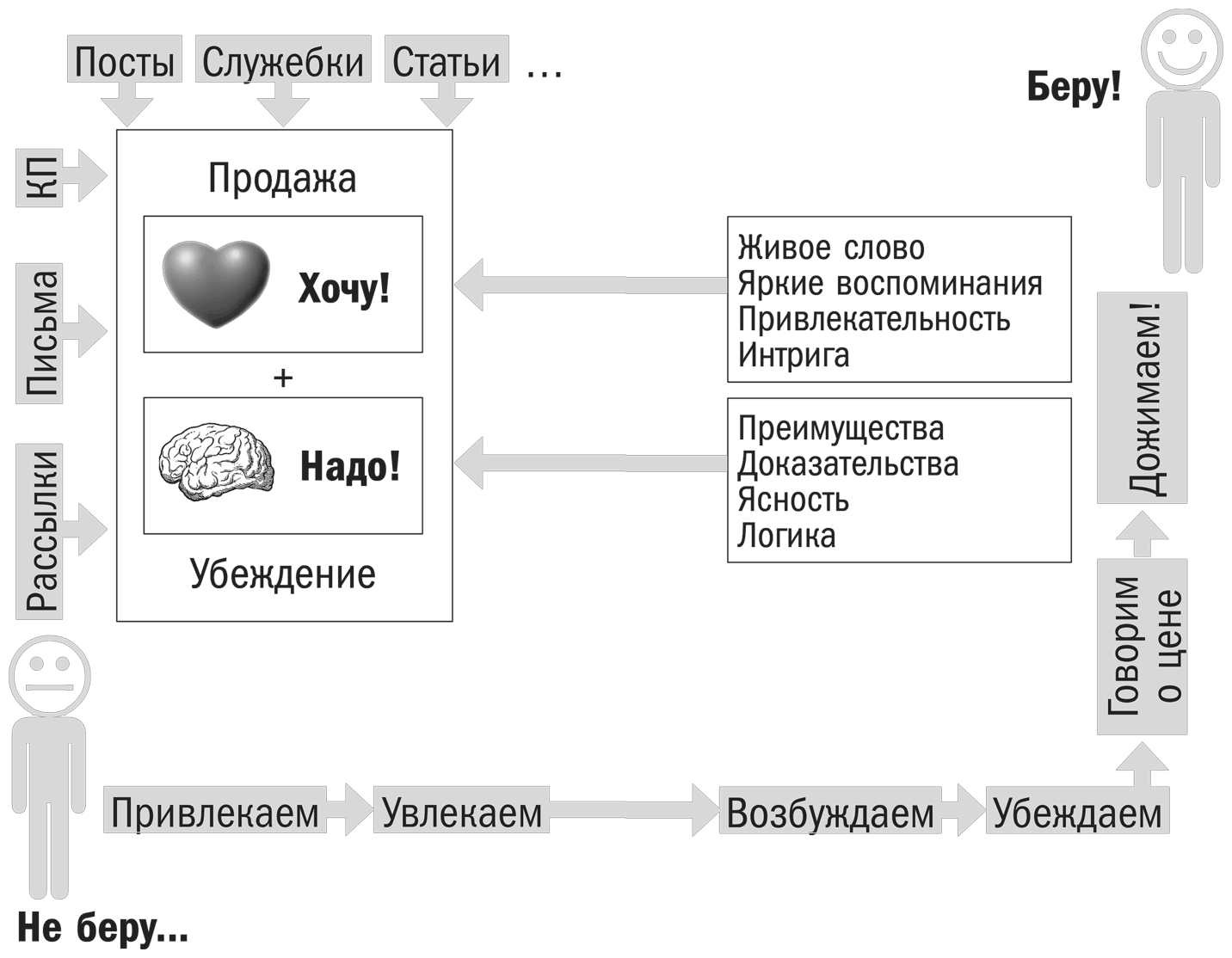 По этой формуле строятся все убеждающие тексты: «продажники», коммерческие предложения, описания продуктов для сайта, служебные записки, статьи… Любое убеждающее послание содержит в себе цель – указание на то, чего же мы, собственно, добиваемся. И аргументы – почему адресат должен поступить «по нашему хотенью».