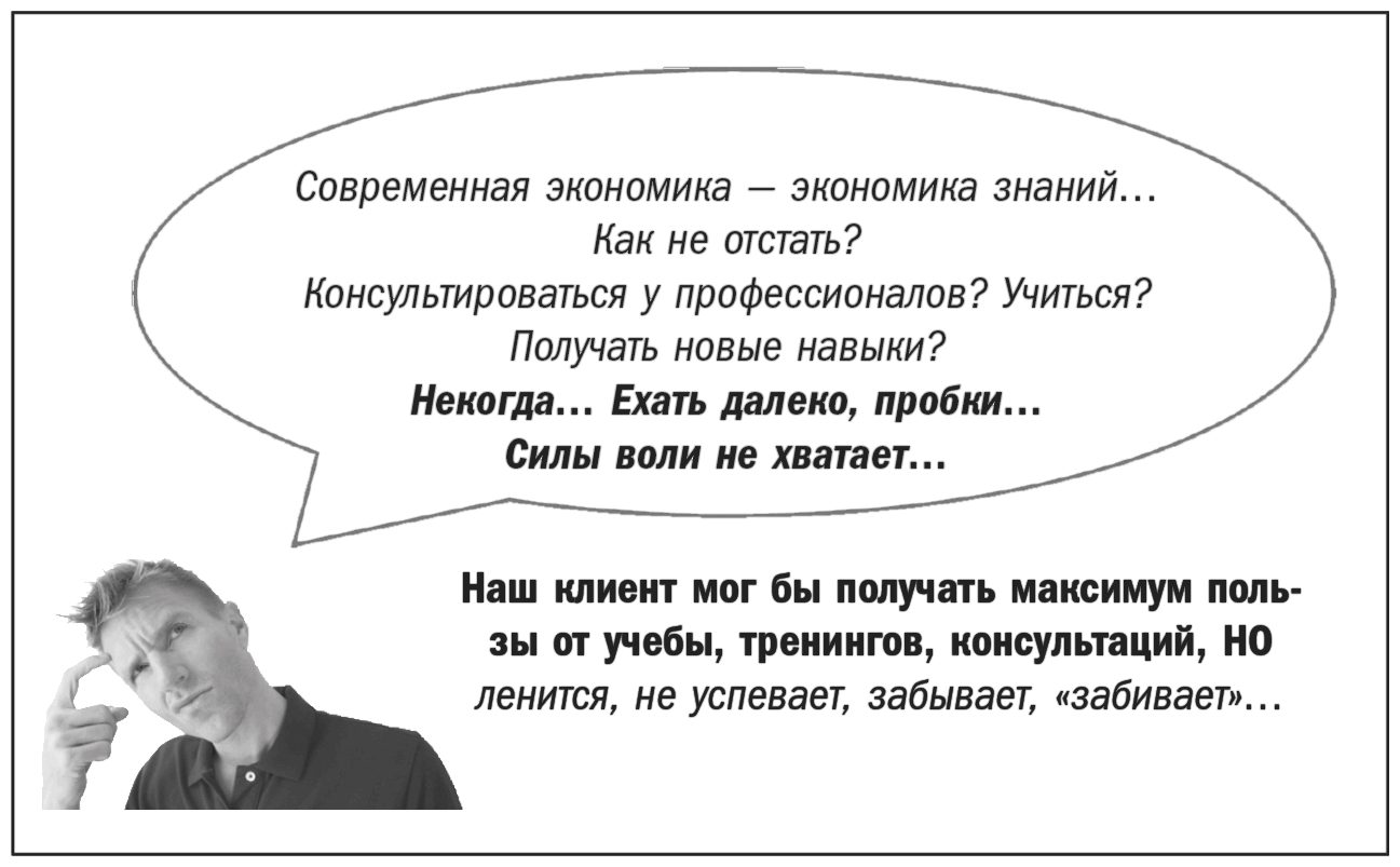 Мы задумались. Что дают покупателю «виртуальные учебники-задачники»? Какая ему польза от «поддержки онлайн-консультаций»? Результат раздумий получился таким: