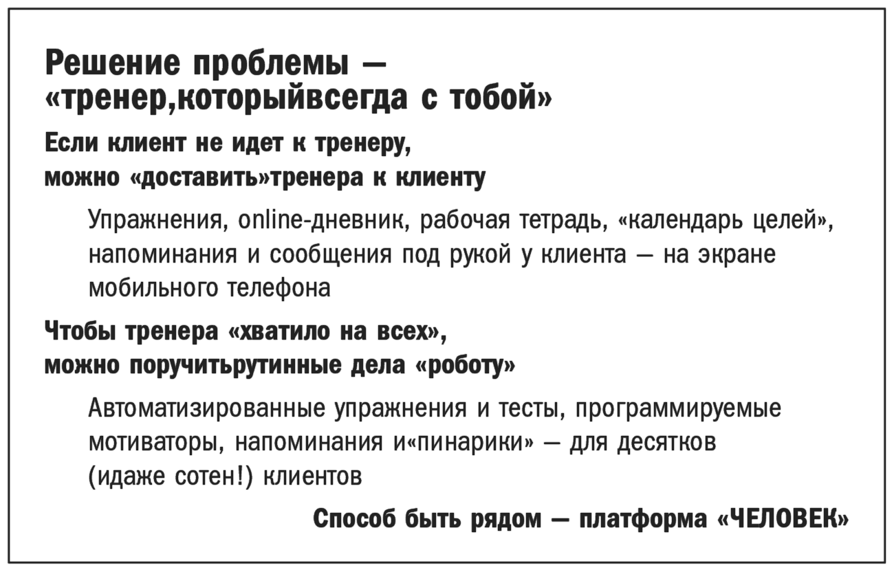 И снова пример – что называется, из личной практики. Не так давно мне довелось участвовать в подготовке слайд-презентации. Мы представляли ИT-платформу для учебных, консалтинговых и тренинговых центров, и раздел о функциях этой платформы клиент никак не хотел утверждать. Выглядел этот раздел так: