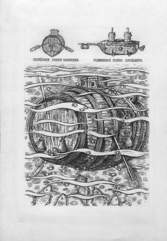 – Да, ещё при Петре I была построена первая подводная лодка, потаённое судно Никонова, – она была совсем маленькая, на двух гребцов, и погружалась очень неглубоко. Во времена капитана Александра уже были построены и испытаны небольшие подводные лодки с несколькими гребцами – Корнелиуса в Лондоне и Шильдера в Петербурге.