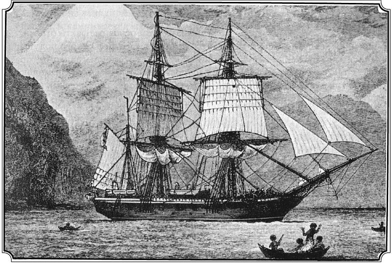 Большие черные тучи, клубясь, проносились по небу, а шквалы дождя с градом налетали так неистово, что капитан решил укрыть судно в бухте Вигвамов. Но зайти в пролив было очень непросто. Шторм усиливался. Жестокий шквал заставил моряков убрать часть парусов.