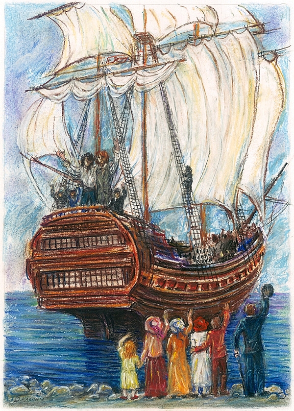 Была весна, и щеки девушек, провожавших корабль, раскраснелись, словно алые розы, как это обычно бывает на холодном и соленом морском ветру. Родственники и друзья моряков, уходящих в дальнее плавание, тихо шептали и молились: