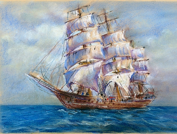 Наступил момент прощания. Якоря подняты. Капитан стоял на капитанском мостике, привычно сжимая в руках штурвал. Ветер наполнил паруса, и корабль отчалил от берега.