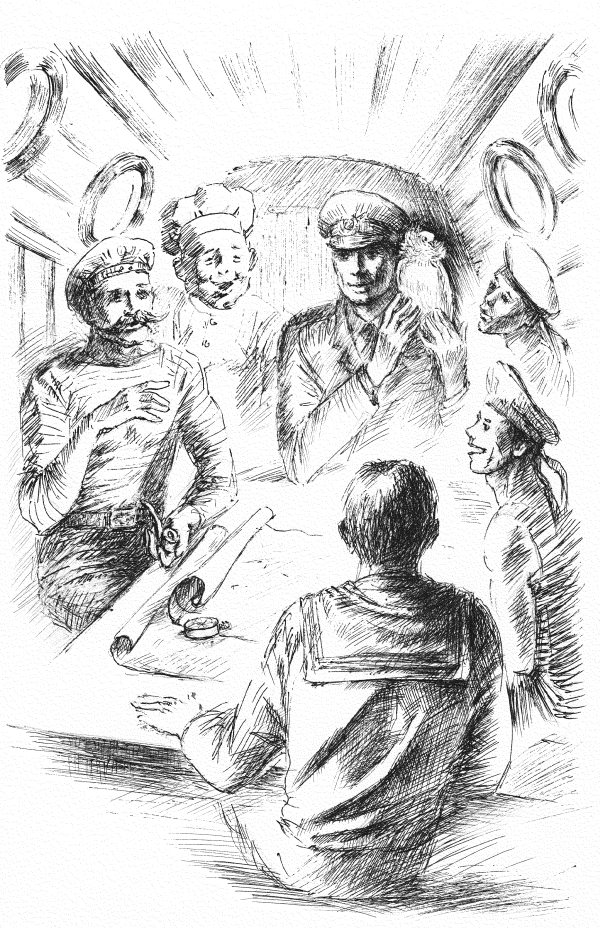 – Я понимаю вас. Какой мальчишка откажется быть матросом на корабле самого капитана Александра? Такая удача редко кому выпадает. Ведь рядом с ним вы сможете научиться управлять парусами, ориентироваться по звездам, вязать морские узлы и освоить многое другое, увлекательное и интересное. Но наш капитан, как я понял, не очень хочет надолго брать вас с собой. Давайте поговорим с ним об этом.