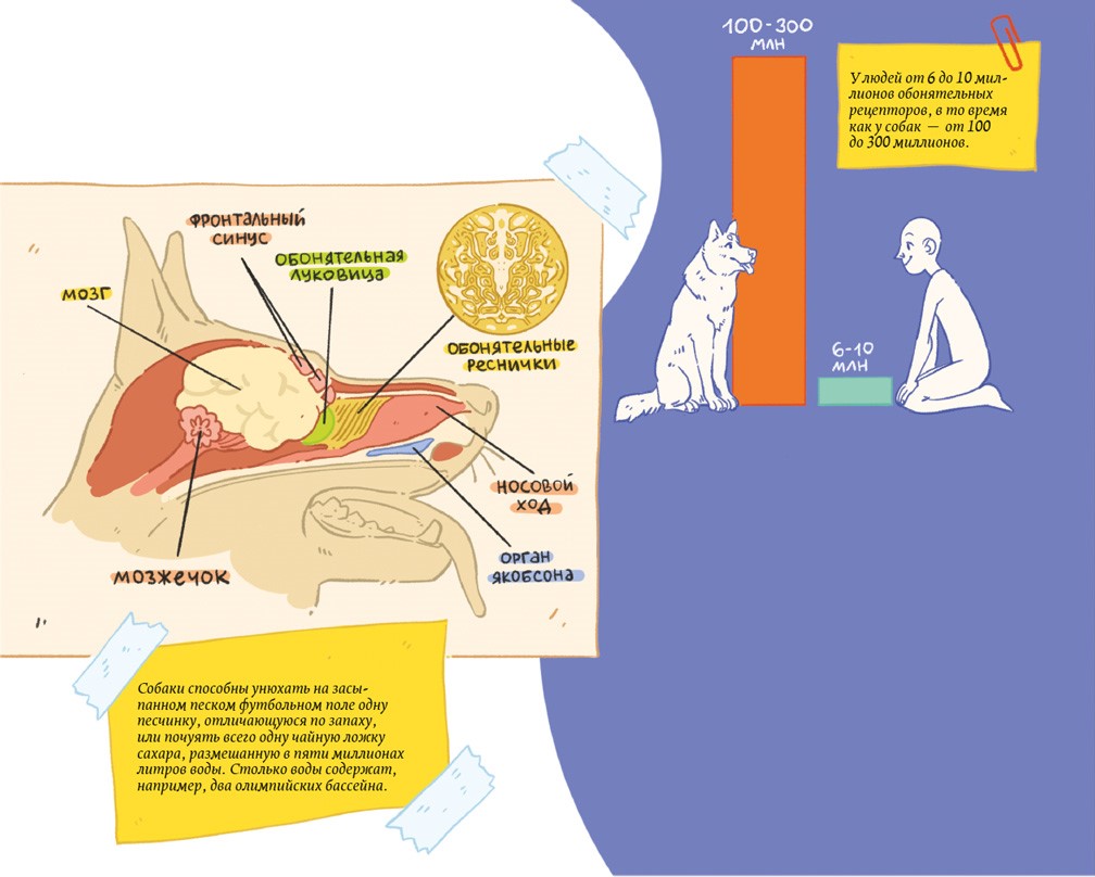 Поэтому человек способен различить примерно 4000 запахов, а собака – до одного миллиона!