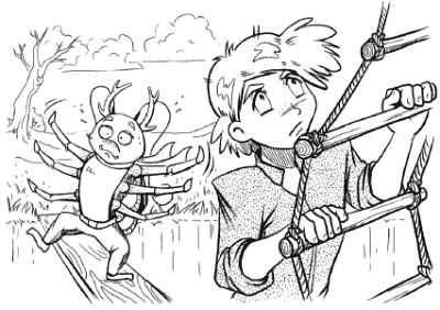 – Да как же мы поднимемся? Тут ров! – пылко прошептал в ответ Добрый Жук, но голова уже исчезла. Жук нахмурился: – Нет, серьезно. Как нам добраться до лестницы?