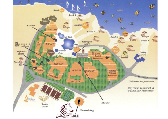 Великолепная восточная архитектура белых зданий с куполами, арками, использование в декоре интерьеров мозаики, ковки, восточной вязи, машрабеи – погружает в сказку с первой минуты пребывания в этом отеле. Высокий уровень сервиса, чудесная кухня, уютные номера, зеленая ухоженная территория – всё это способствует спокойному размеренному отдыху. А для любителей активного отдыха – теннисные корты, собственная конюшня при отеле и весь спектр развлечений «Naama Bay». От отеля начинается променад по побережью залива с множеством баров, ресторанов и кальянных.
