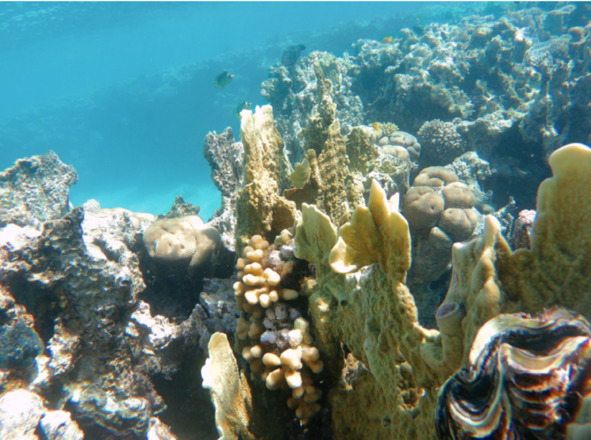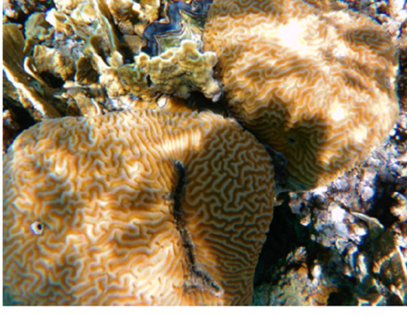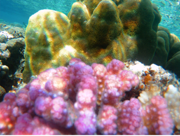 Четвёртое – это конфигурация многочисленных коралловых формирований – подводных островков. Они узкие по ширине (два-три метра) и расположены полосами параллельно линии берега. И кораллы растут по всей их окружности, естественно, больше всего с южной стороны. К тому же риф не сплошная стена, а с глубокими впадинами и большими выступами в сторону моря. В результате этого протяжённость линии кораллов составила не 400 метров длины, как длина пляжа, а несколько километров!