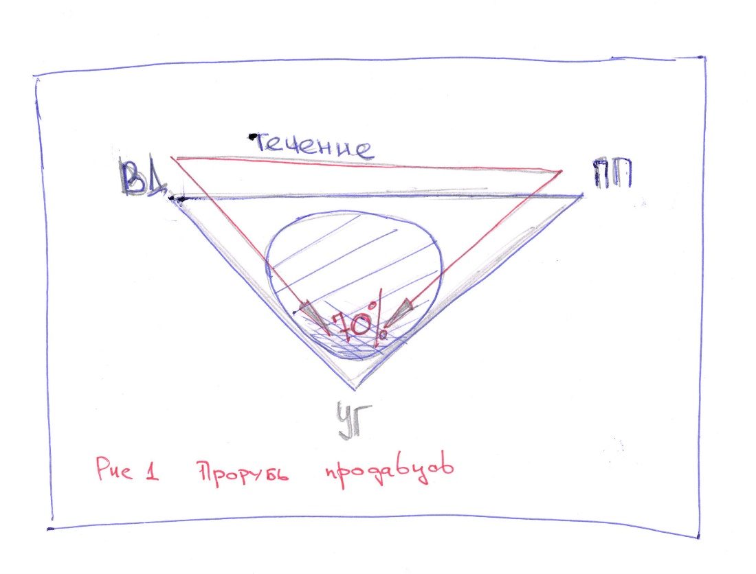 На рисунке 1, получится треугольник с тремя вершинами (УГ, ВД и ПП) назовем этот треугольник – прорубью продавцов, вот мы в ней и болтаемся, причем унылый угол однозначно тупой.