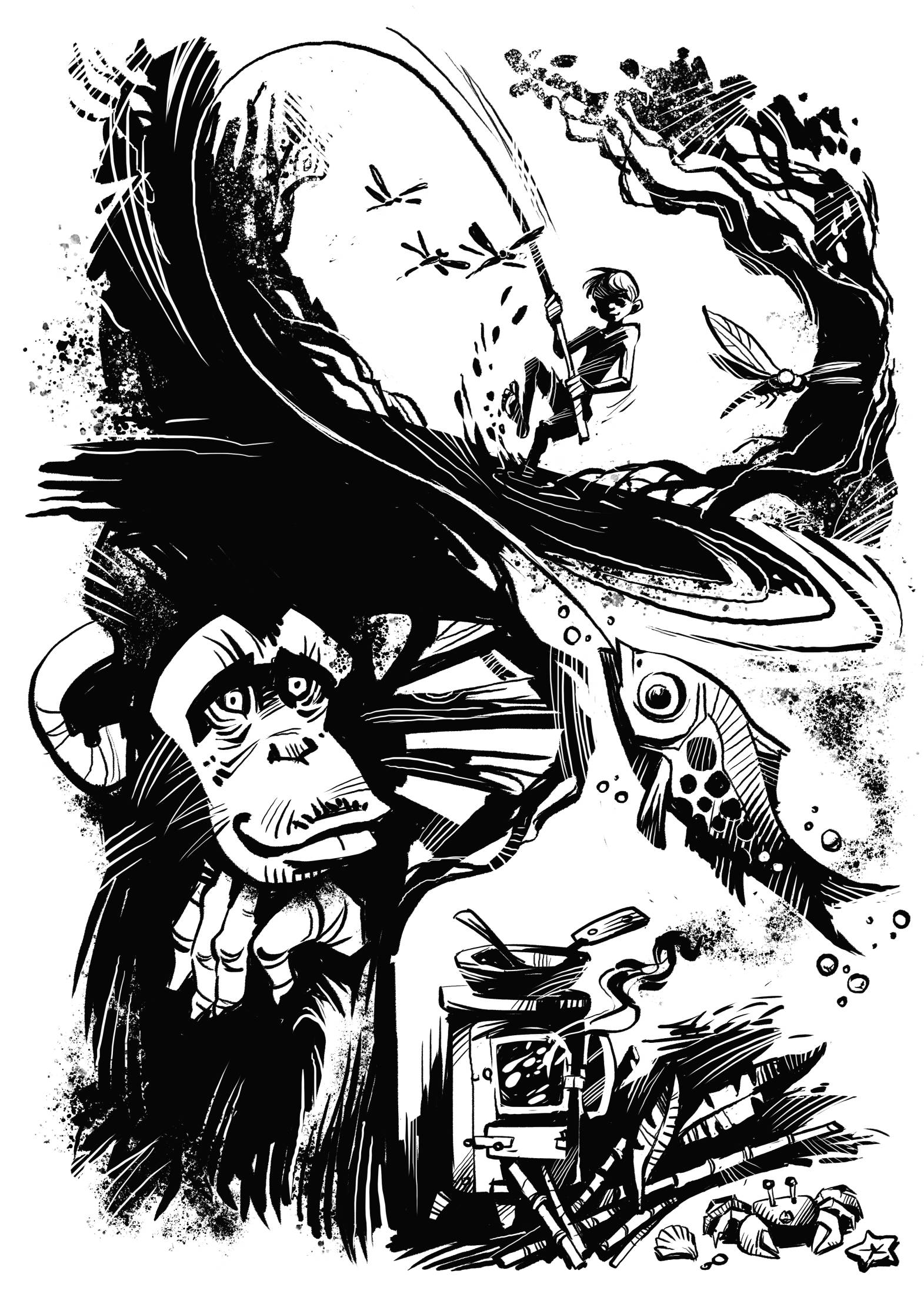 Когда жара спала, а воздух начал темнеть, Мик причалил к корням огромного дерева. Одной половиной оно росло из земли, а другой из воды.