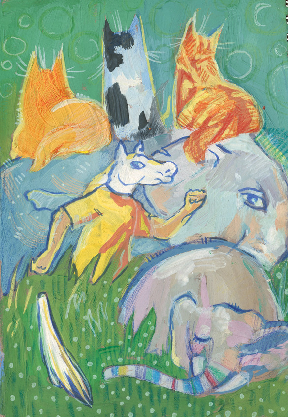А какой ты любишь цвет,Цвет, милей какого нет?Подумала немножкоИ сказала кошка:«Симпатичный – голубой,Словно небо надо мной,Но люблю я белый цвет,Цвет, вкусней какого нет —Я того скрывать не стану,Очень я люблю сметану!»Молвила корова: «Му!Я чего-то не пойму!Чем тебе так плох зелёный,Цвет травы, дождём вспоённой?!»И лягушки: «Да-да-да,Зелень ряски из пруда!»
