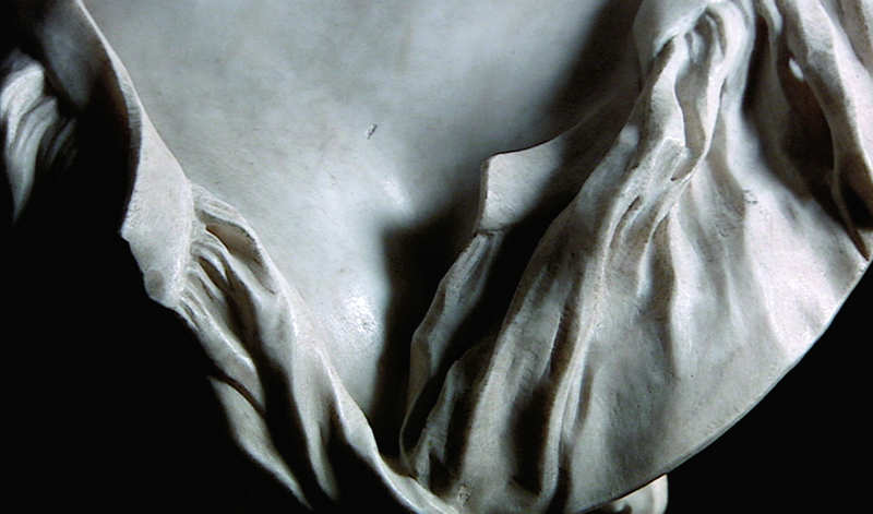 В страстной любви есть что-то такое, что побуждает влюбленных заявить о ней во всеуслышание. Бернини изваял бюст Констанцы с такой любовью, словно, отбросив всякую осторожность, упивался этим занятием, вновь переживая с каждым движением инструмента все ласки, которые ей дарил. Волосы Констанцы, густые и блестящие, собраны свободным узлом на затылке, но из узла выбивается один локон. Глаза женщины широко раскрыты, полные щеки пышат здоровьем; сорочка ее приоткрыта на груди с одной стороны чуть больше, чем с другой, – это самое сексуальное приглашение во всей европейской скульптуре.