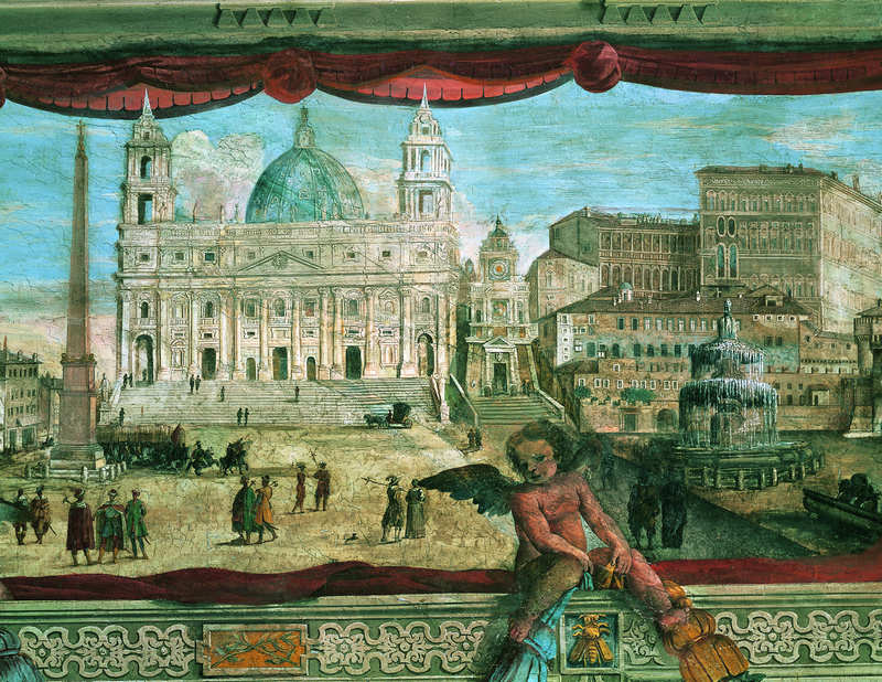 Неизвестный автор. Собор Святого Петра с колокольней Бернини. Ок. 1635. Фреска.