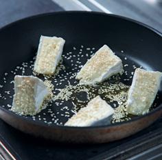 Разделать лосося на чистое филе без кожи и костей, нарезать ровными прямоугольными ломтиками. Для маринада смешать соевый соус с соком лайма, листьями кинзы, водой, перцем горошком и семенами кориандра. Опустить в этот маринад рыбу на 10–15 минут.