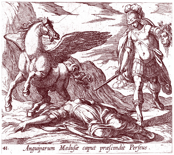 Как мне описать лик горгоны с отрезанной головой и кровавой раной от изогнутого клинка? Видятся мне потоки яда, извергнутые изо рта, и погибель, что струится из полумертвых глаз! Сама Паллада не смела посмотреть на голову, и Персей, даже отведя взгляд, мог бы окаменеть навеки, если бы богиня не распустила густые волосы Медузы и не накрыла ее лицо змеями. И так он схватил горгону и вознесся на крыльях в небо.