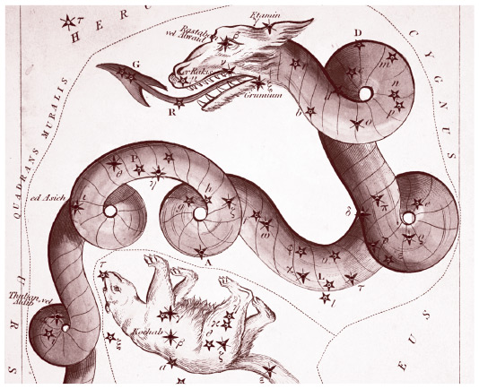 Созвездия Дракон и Малая Медведица на астрономической карте, 1825 г.