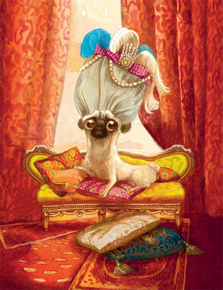 Аттила остался высиживать яйца, а Шерлок и мандаринка проследовали через несколько величественных залов, прежде чем оказались в королевской почивальне. Там, в изящном кресле полулежала молоденькая собачка.