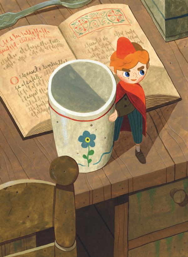 Мальчик, увидев гнома, был очень озадачен, но не испугался. Разве можно было бояться такого маленького существа? Гном так погрузился в своё занятие, что ничего не видел и не слышал, и мальчик вдруг надумал сыграть с ним какую-нибудь шутку, например, столкнуть его в сундук и захлопнуть крышку или что-нибудь в этом роде.