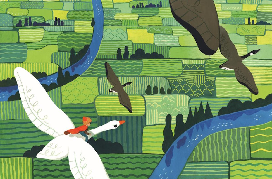 Гусь попробовал последовать её совету и лететь скорее, но так устал, что вынужден был опуститься на уровень подстриженных деревьев, окаймлявших поля и луга.