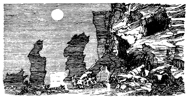 Буря понемногу стихала. Небо мало-помалу прояснилось, и отсветы месяца заиграли на волнах. Мальчик выглянул из пещеры. Она находилась довольно высоко, и к ней вела в гору узкая, крутая тропинка. Видно, тут и надо ждать гостей.