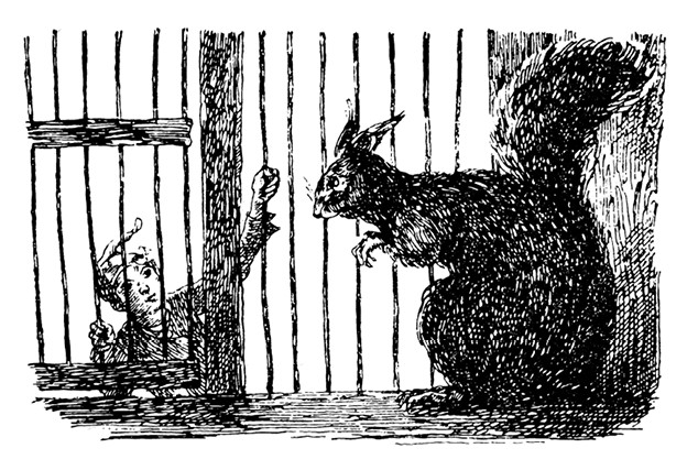С этими словами он вытащил из клетки молодую бельчиху со всем её выводком и положил их в передник старой хозяйки.