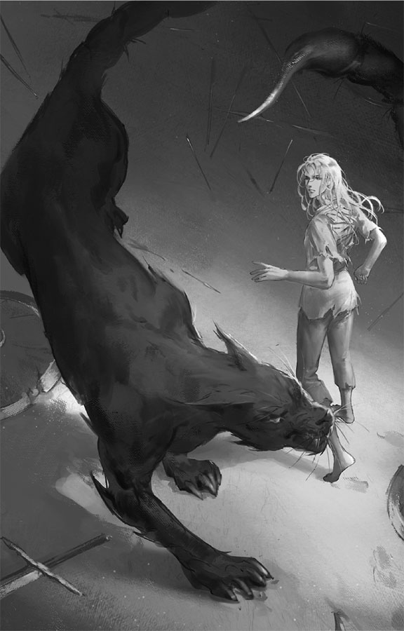 «Я встречал когда-то упоминание о них, но в моей голове сейчас сплошная каша… Blathien. Ничего не могу вспомнить. Судя по дэ, это священный зверь… Но зачем и меня, и его вывели на арену? Все эти люди ждут… когда мы сразимся? Но ведь я совсем ослаб, а эта зверина лоснится на зависть знатным hve в Скидане».