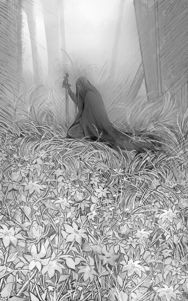 Мы встретились здесь, в тени странных деревьев,Костями застывших в средине холма.Коснулись их странности сотни поверьев,Окутала древних легенд бахрома.Затем он замолчал. Как глупо! Почему Син так не любит эти песни? В каждом трактире все остаются в восторге от подобных песен! Ведь необязательно даже знать лесной язык, чтобы понять, что в этом душещипательном отрывчике повествуется о любви!