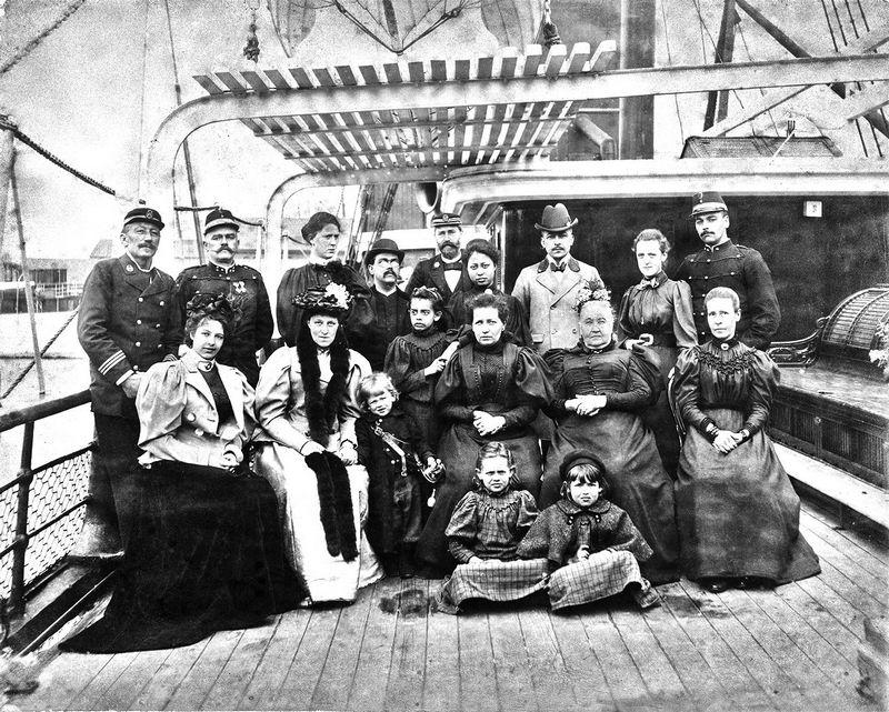Маргарита (сидит первая слева) и Рудольф МакЛеод (стоит второй справа). 1897 год