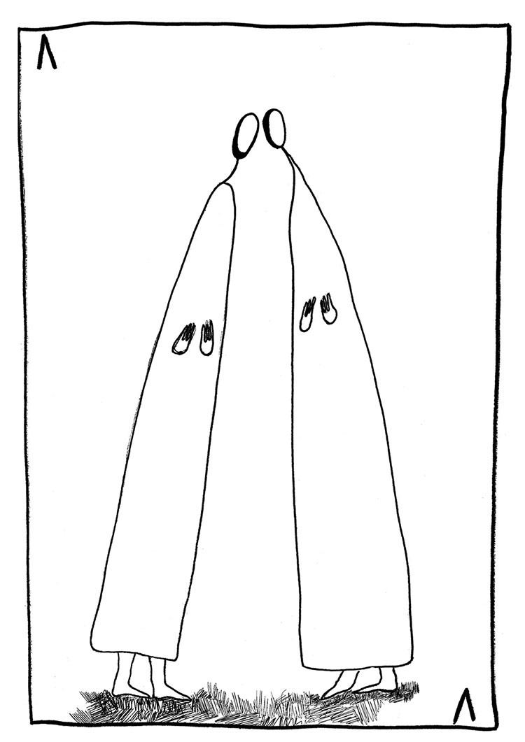 – Смотрите… или мне кажется? У прохожих на лбу какие-то шишки. Градом побило?