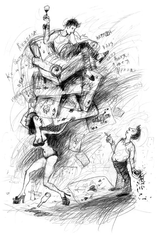 – На жизнь… я зарабатываю не этим, – чуть усмехается он, – я играю. Вот за этим столом, – он показывает на шаткий круглый стол, когда-то полированный, с множеством тёмных лунок от сигарет. – Здесь, старик, идёт такая игра… такие шальные бабки… такие люди приходят…