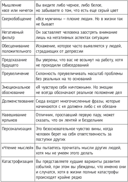 Большую роль в определении негативной мысли играют когнитивные ошибки – это маркеры, которые точно могут сказать, что мысль была неправдивой.