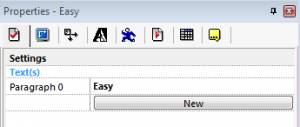 Растянем побольше наш объект до размера читаемого пункта и перейдём в окно свойств. Обращаю внимание на слово «Paragraph» в окне свойств – в данном случае мы могли бы ввести несколько вариантов строки через кнопку «New», если бы делали, скажем, игру на разных языках.