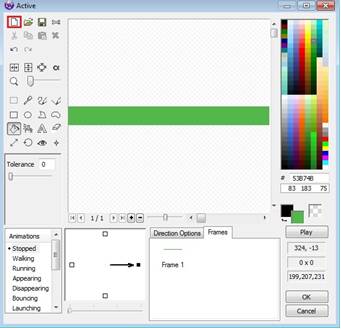 Создаём еще один объект Active. В его окне выбираем Fill tool, Clear, Brush tool и рисуем фрагмент травы.