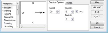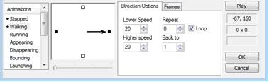 Для Walking установим следующие значения для движения вправо и влево (а также загрузим по 3 анимации Диззи для движения в этих направлениях):