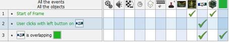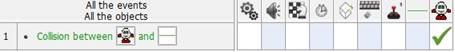 Соответственно в редакторе событий заменим все условия соприкосновения с объектами с Диззи на наш новый прямоугольник. Делаем это просто: в редакторе событий дважды кликаем на иконку Диззи и выбираем вместо него новый объект.