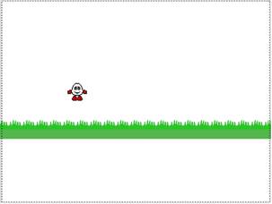 Создадим новый документ. Сначала нарисуем поверхность и героя, как мы уже делали в уроке 2. Ничего страшного, повторение – мать учения. Растянем первое изображение в длинный прямоугольник, нажмём Clear и воспользуемся зелёной заливкой.