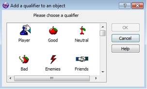 Создадим два активных объекта, загрузим заранее заготовленные изображения предметов и назовём их Item 1 и Item 2. Не забываем поместить их в общую группу (Events – Qualifier(s) – Edit – Add – Friends).